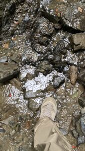 あいにくの雨模様でしたが、登りはケーブルカーを利用せず6号路へ進みました。森林地帯を緩やかに登り、途中から飛び石で沢の中を登っていく「水のコース」とも呼ばれるコースです。途中でなんと、